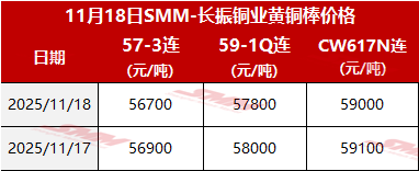 【SMM价格】2025年11月18日长振黄铜棒价格