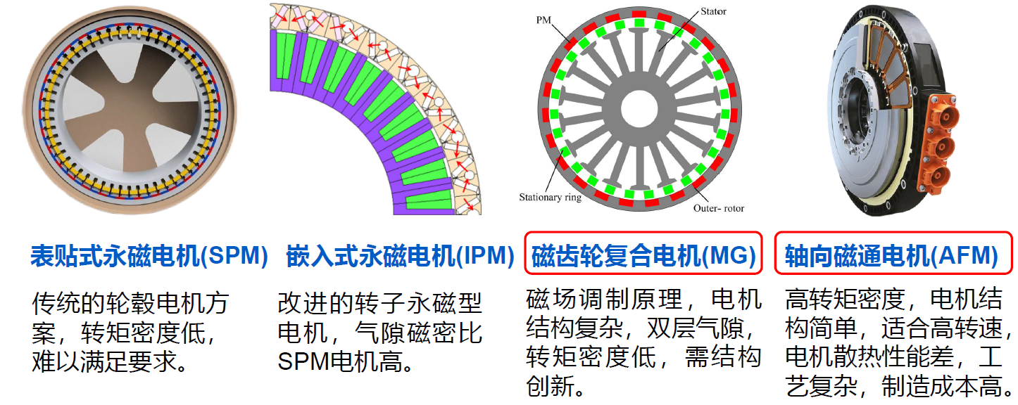 根据目前电机技术的研究,最具发展前景的两种电磁拓扑结构是轴向磁通轮毂电机和磁场调制永磁轮毂电机。