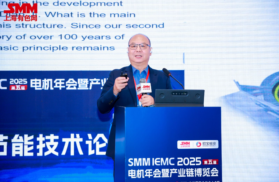 11月13日,在由上海有色网信息科技股份有限公司(SMM)主办,宁波招宝磁业股份有限公司总冠名的SMM 2025 IEMC(第五届)电机年会暨产业链博览会——电机创新节能技术论坛上,河北科技大学教授李斌分享了“轮毂电机关键技术及未来发展方向——探索轮毂电机技术的创新与应用”这一主题。