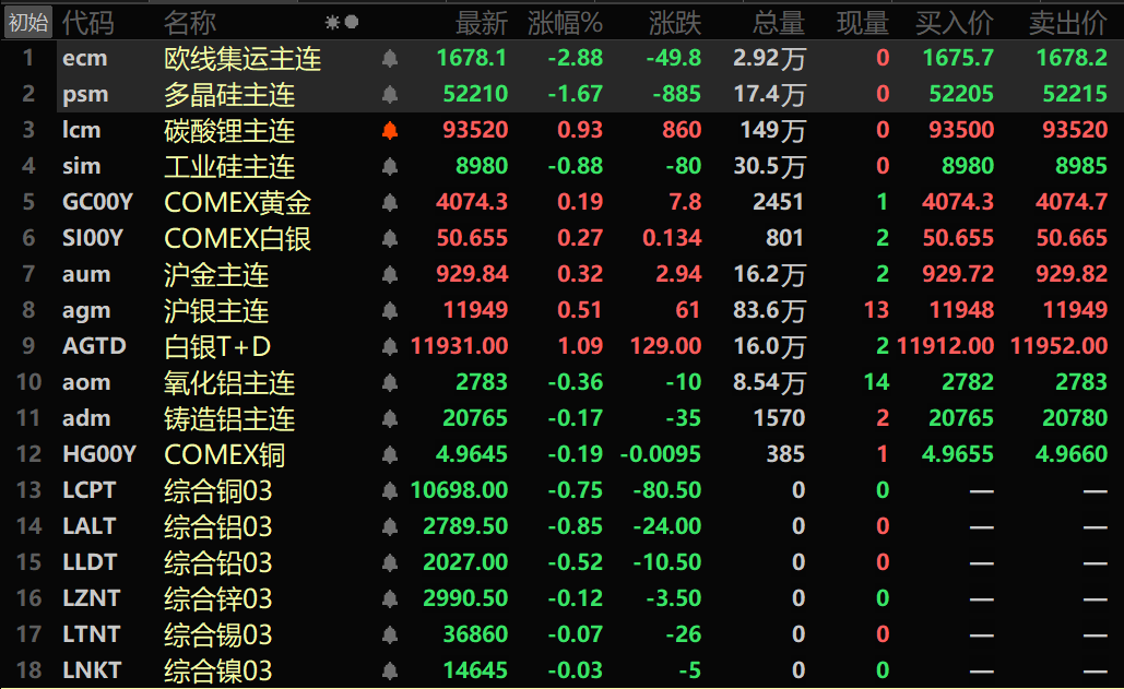 隔夜内盘基本金属普跌,沪铜跌0.03%,沪锡涨0.68%。沪镍跌0.02%。沪铅跌0.49%。沪铝跌0.16%,沪锌涨0.11%。此外,氧化铝主力期货跌0.36%,铸造铝主连跌0.17%。