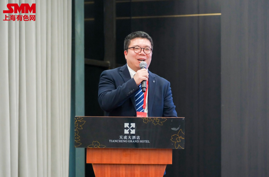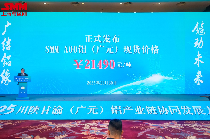 会议现场,SMM大数据总监 刘小磊正式发布正式发布SMM A00铝(广元)现货价格¥21490元/吨!