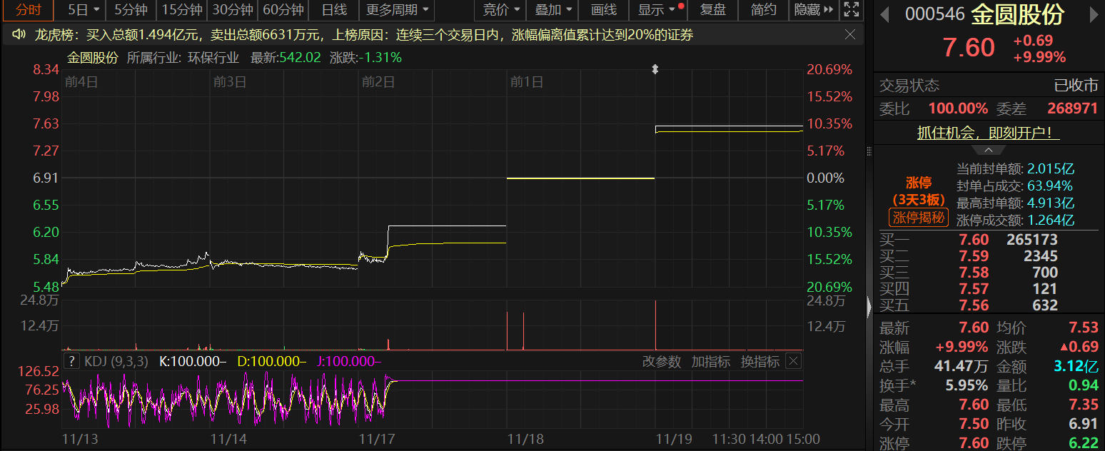 而锂矿概念股金圆股份也成功拿下三连板,公司也发布了股票价格异常波动的公告,表示公司未发现近期公共传媒报道对公司股票交易价格产生较大影响的未公开重大信息。据媒体消息,金圆股份证券部工作人员回应,公司盐湖提锂项目的碳酸锂产品还在试生产阶段,目前没有具体报价。股价波动受多方面因素影响,以公司公告为准。