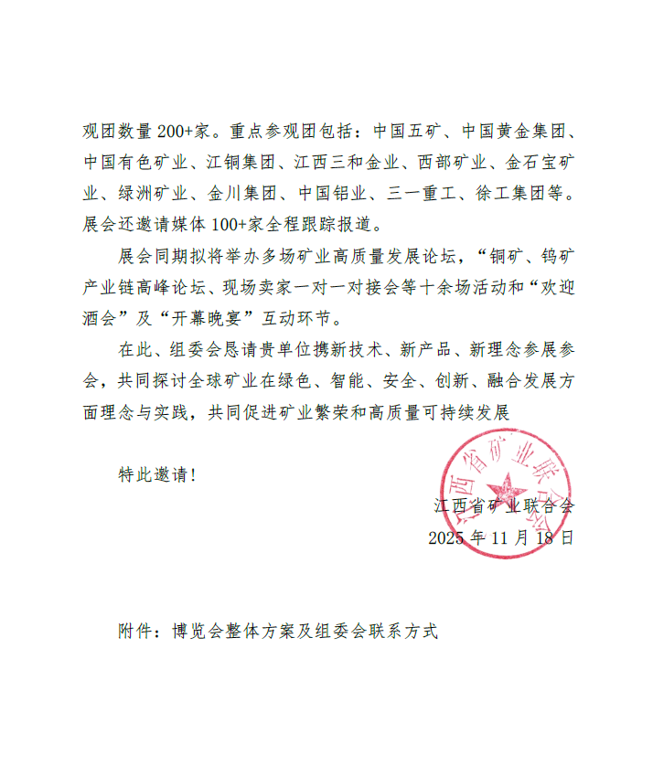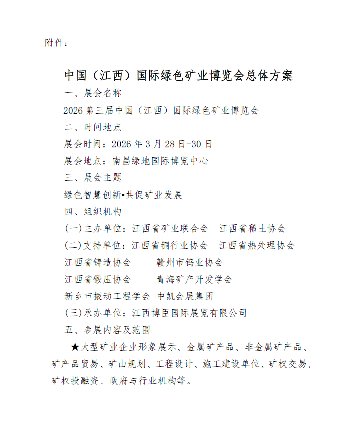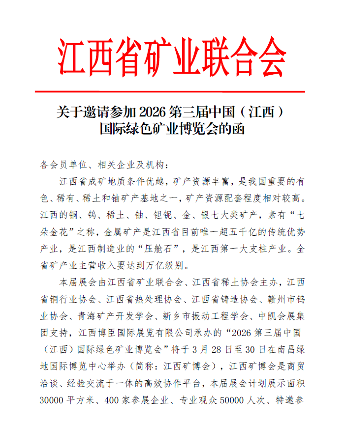 江西省矿业联合会邀您共聚2026 第三届中国(江西) 国际绿色矿业博览会