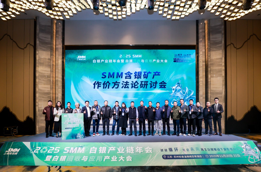 11月20日,在由上海有色网信息科技股份有限公司(SMM)主办的2025 SMM白银产业链年会暨白银回收与应用产业大会期间,备受关注的SMM含银矿产作价方法论研讨会圆满举办!这场聚焦行业核心痛点的闭门研讨,恰逢白银市场高位震荡的关键节点,迅速成为产业链各方交流共识、破解难题的重要平台。