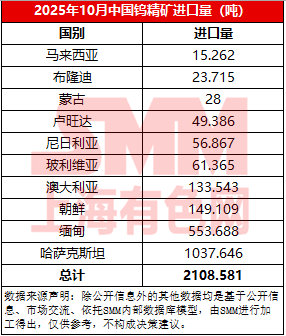 2025年10月中国钨精矿进口数据