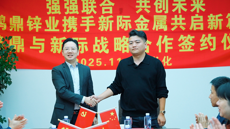 兴化市,2025年11月15日, 兴化市鹏鼎锌品厂与新际金属有限公司 共同宣布,双方已正式签署战略合作协议,共同打造“鹏鼎新际”新品牌,注册成立江苏鹏鼎新际新材料有限公司。此次合作旨在整合彼此的核心优势资源,共同开拓目标市场,为客户创造更极致、更一体化的产品与服务体验,进一步满足差异化的市场需求,引领行业迈向新台阶。