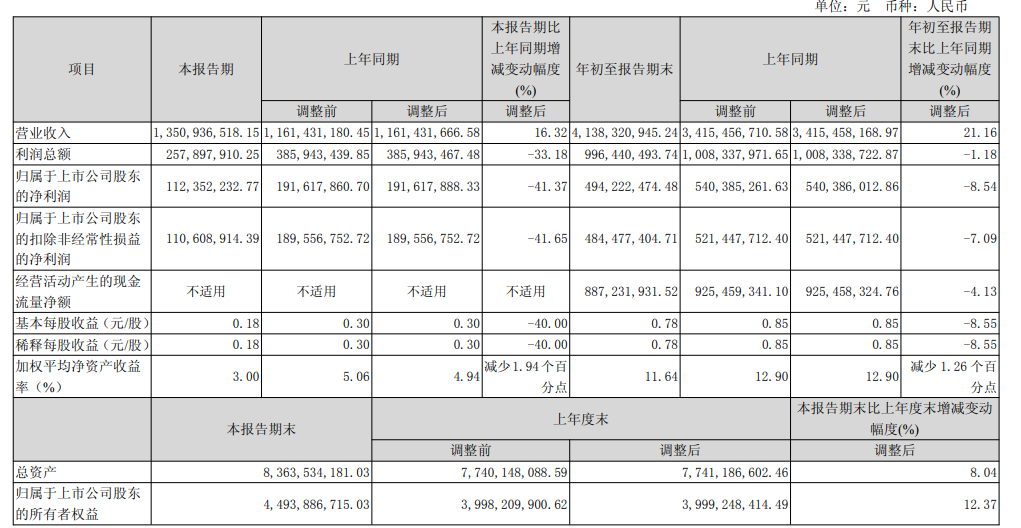 华锡有色10月31日披露2025年第三季度报告。前三季度公司实现营业总收入41.38亿元,同比增长21.16%;归母净利润4.94亿元,同比下降8.54%;扣非净利润4.84亿元,同比下降7.09%。