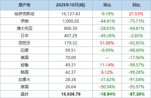 以下为根据中国海关总署官网数据整理的2025年10月精炼锌进口分项数据一览表: