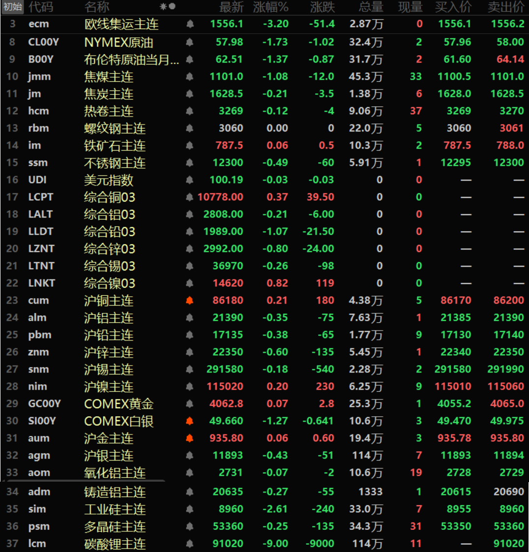 金属市场方面: