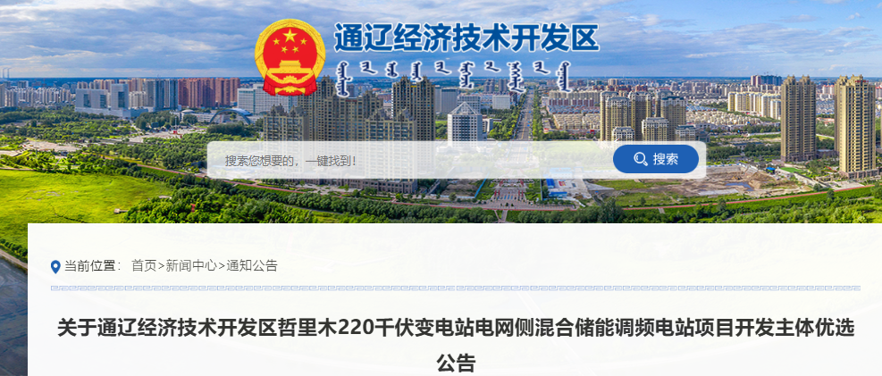 关于通辽经济技术开发区哲里木220千伏变电站电网侧混合储能调频电站项目开发主体优选公告