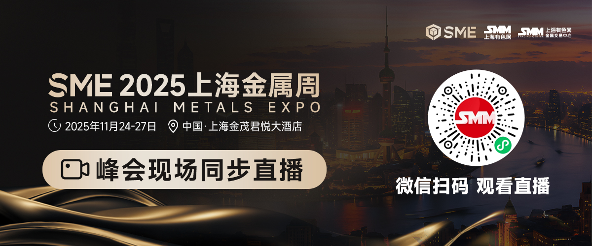 11月24-27日,由上海有色网信息科技股份有限公司、上海有色网金属交易中心有限公司主办的SME 2025上海金属周在中国·上海·上海金茂君悦大酒店隆重召开!