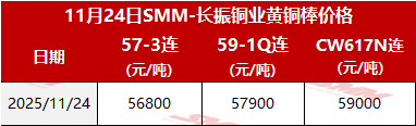 【SMM价格】2025年11月24日长振黄铜棒价格