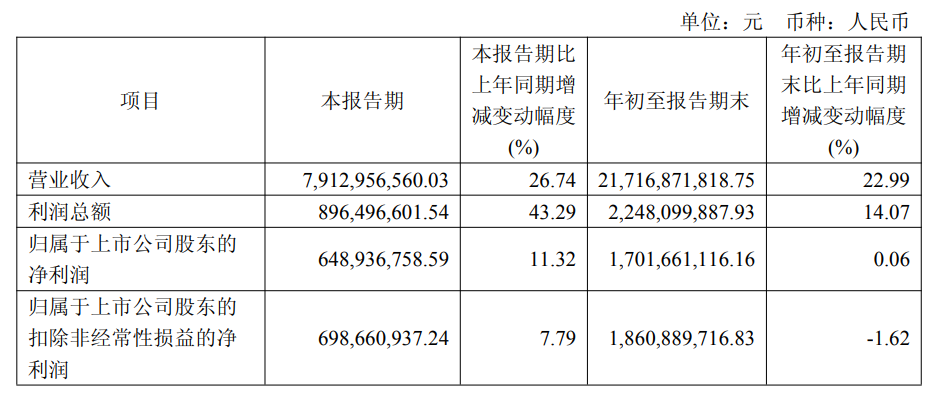 对于三季度利润总额同比增加了43.29%,盛屯矿业的三季报显示:公司主要金属铜产品产销量同比增加,铜价同比增长,利润提升。