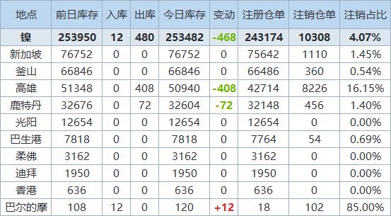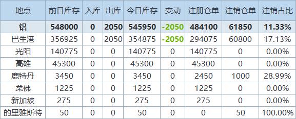 11月21日LME金属库存及注销仓单数据