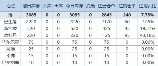 》查看更多金属库存信息
