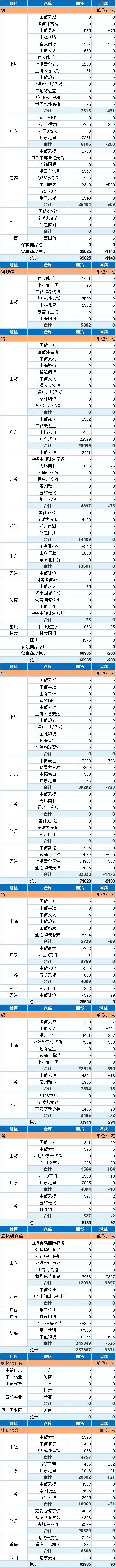 SMM网讯:以下为上海期货交易所11月26日金属库存日报: