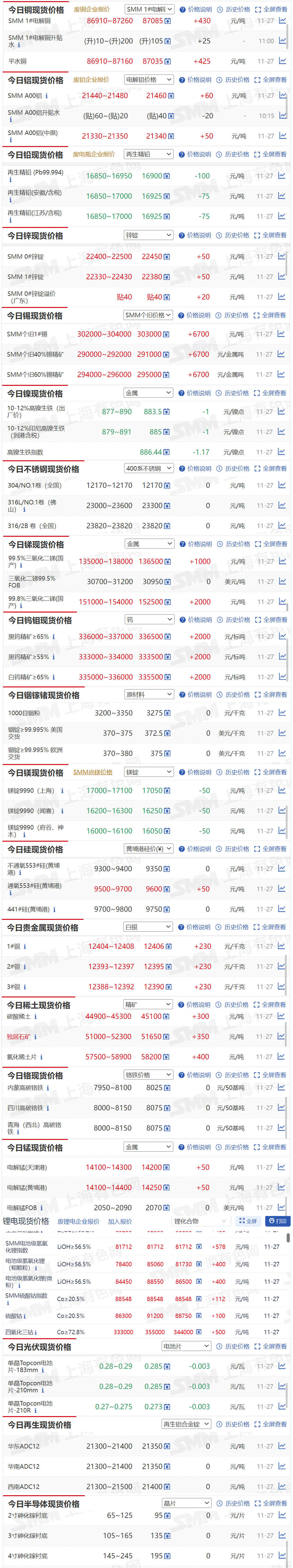 ►SMM 2025/11/27 国内知名再生铅企业废电瓶采购报价