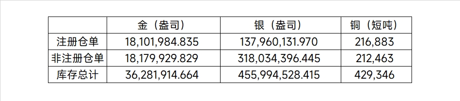 2025年12月1日COMEX金属库存