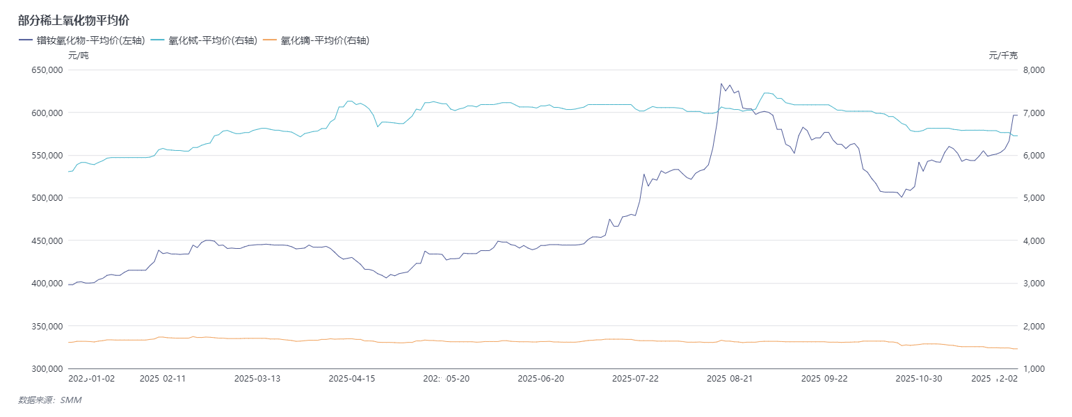 氧化镨钕11月涨6.69% 氧化镝11月跌逾6% 氧化铽11月微降
