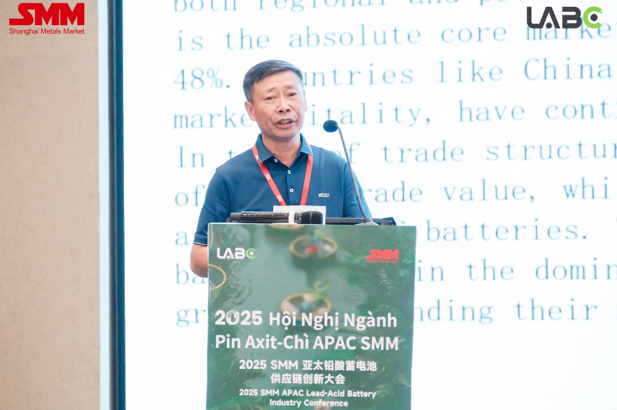 在由上海有色网信息科技股份有限公司(SMM)主办的2025SMM亚太铅酸蓄电池供应链创新大会上,旭派电源越南有限公司总经理张文泉围绕“全球铅酸蓄电池供应链市场现状与展望”的话题展开分享。