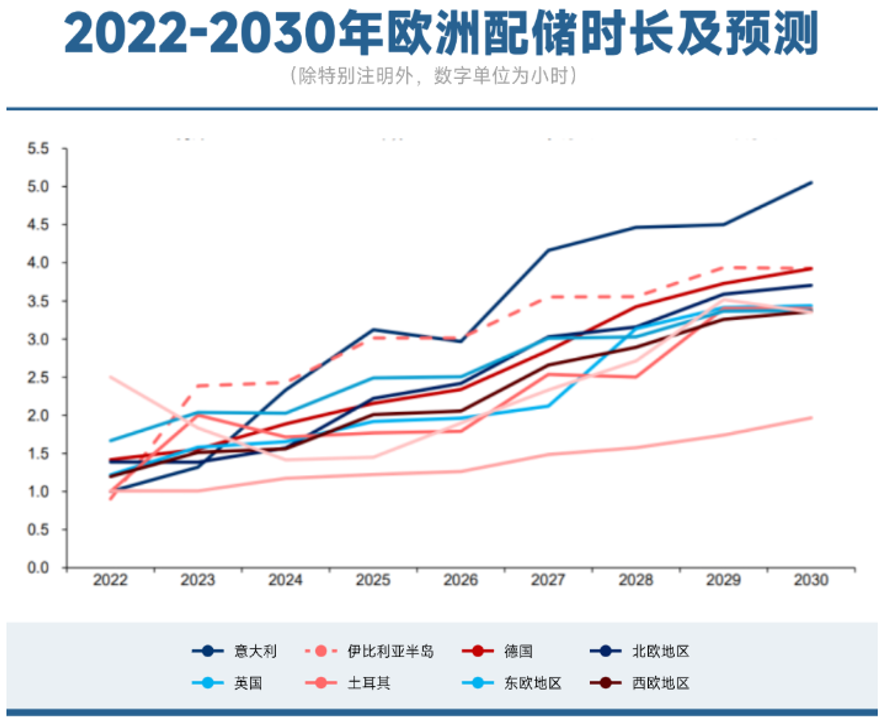 ▲预计到2030年欧洲配储时长将达约5.1小时。