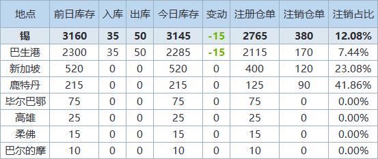 》查看更多金属库存信息