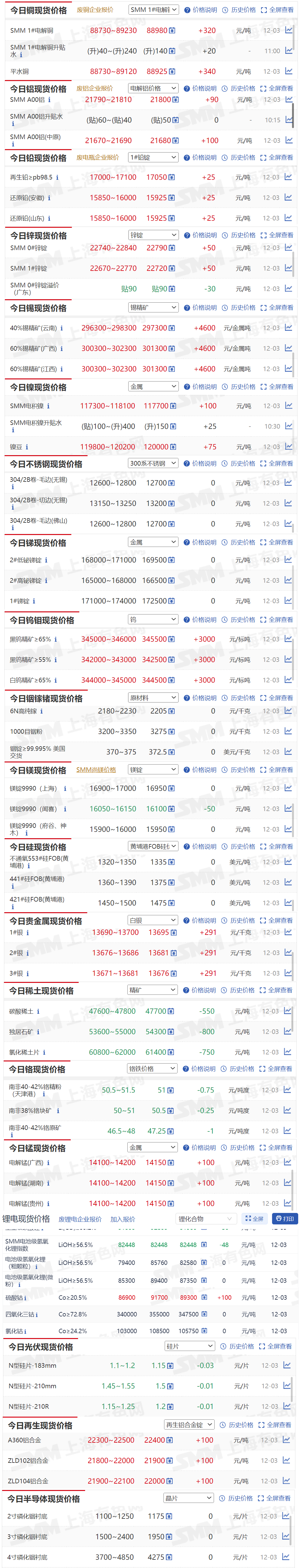 ►12月3日上海市场铜现货升贴水(第四时段)【SMM价格】