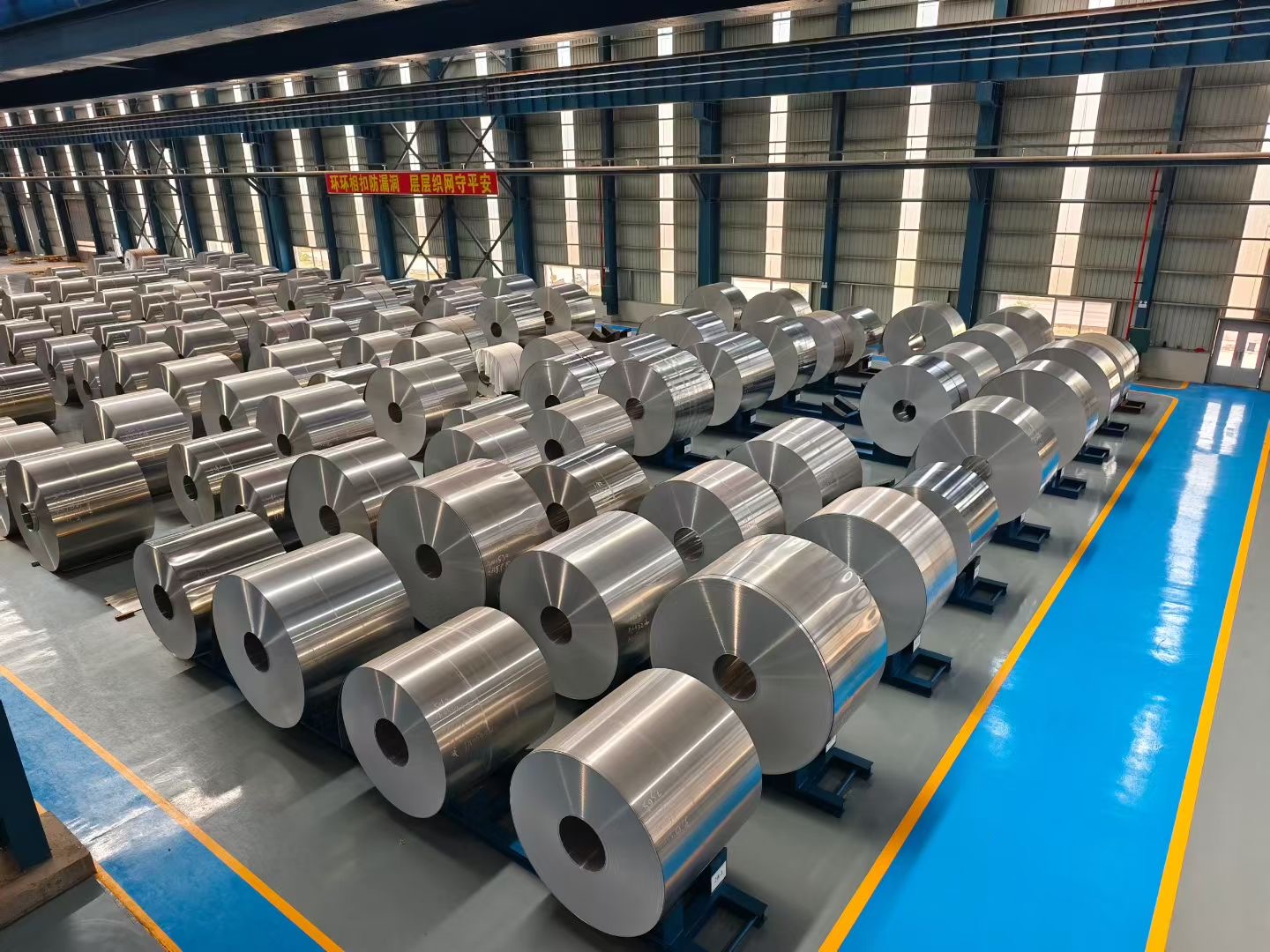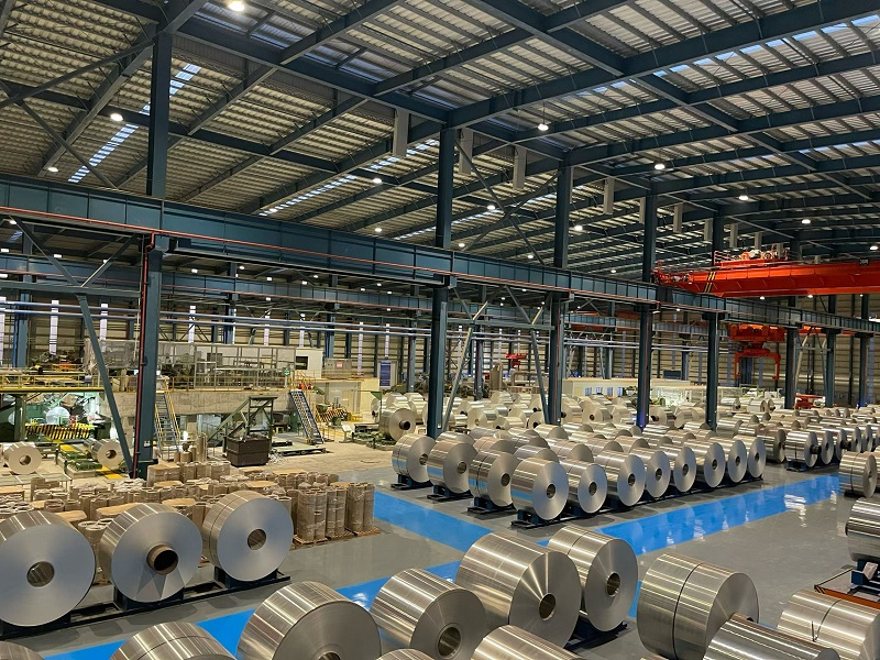 食品包装铝材:产品应用于易拉罐包装领域,成品规格范围0.2-0.6mm*1000-2150mm,产品涵盖3104/5052/5182等合金。