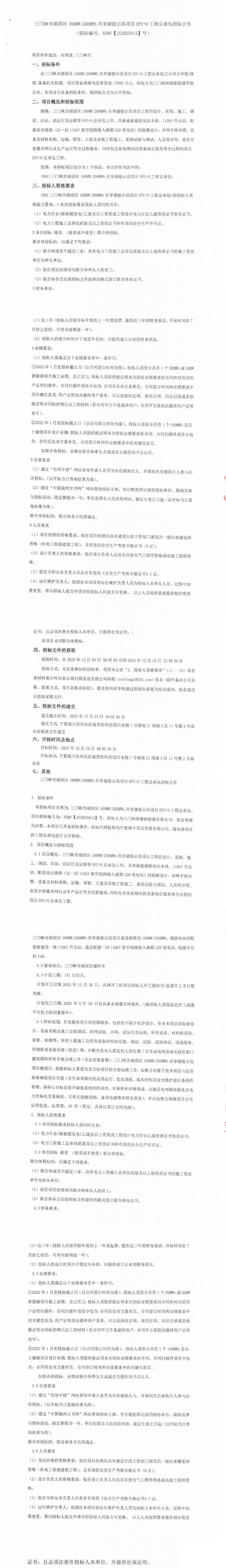 北极星储能网获悉,12月3日,三门峡市湖滨区100MW/200MWh共享储能示范项目EPC+O工程总承包招标公告。
