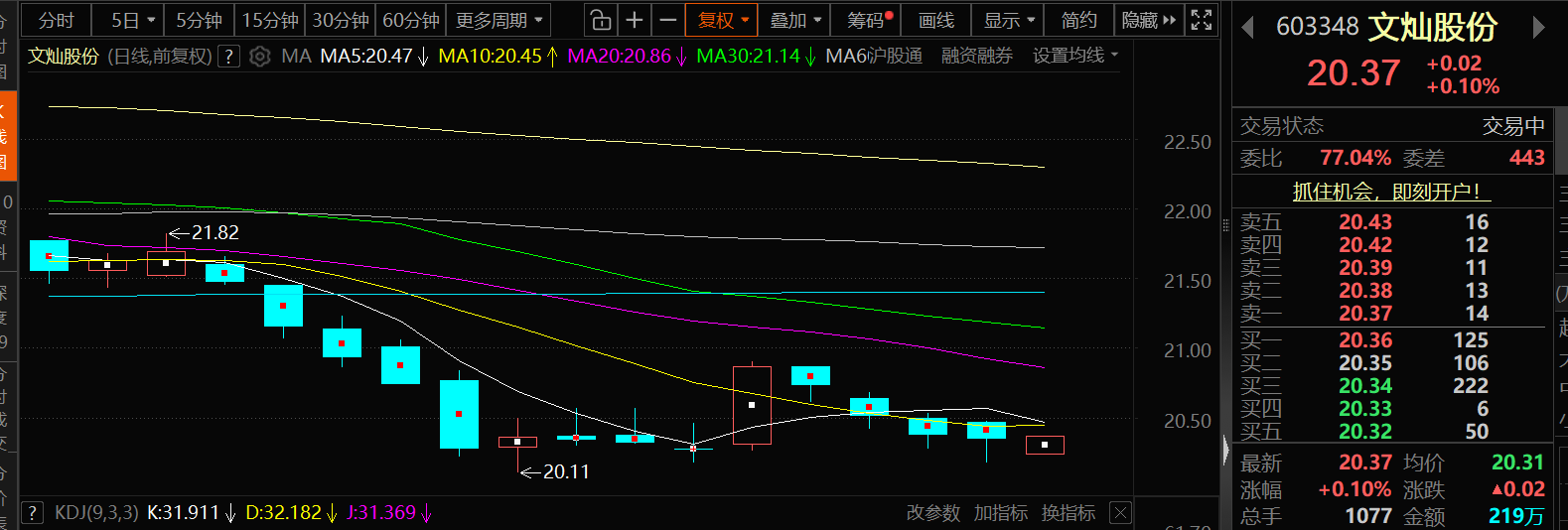 12月5日,文灿股份开盘小幅上涨,截至5日9:35分,文灿股份涨0.1%,报20.37元/股。
