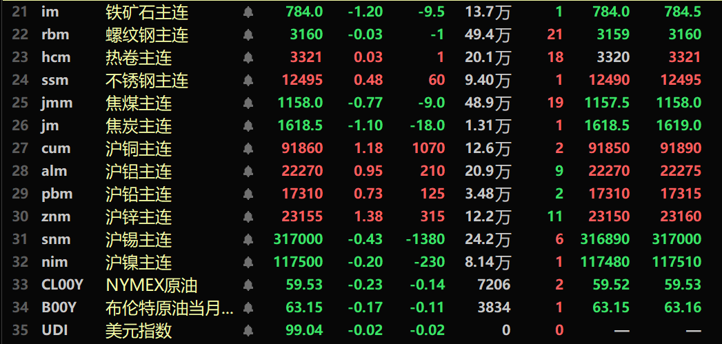 截至午间收盘,内盘基本金属多飘红,沪铜涨1.18%,盘中刷新历史新高至92000元/吨。沪锡跌0.43%,沪铝涨0.95%。沪铅涨0.73%,沪镍跌0.2%。沪锌涨1.38%。