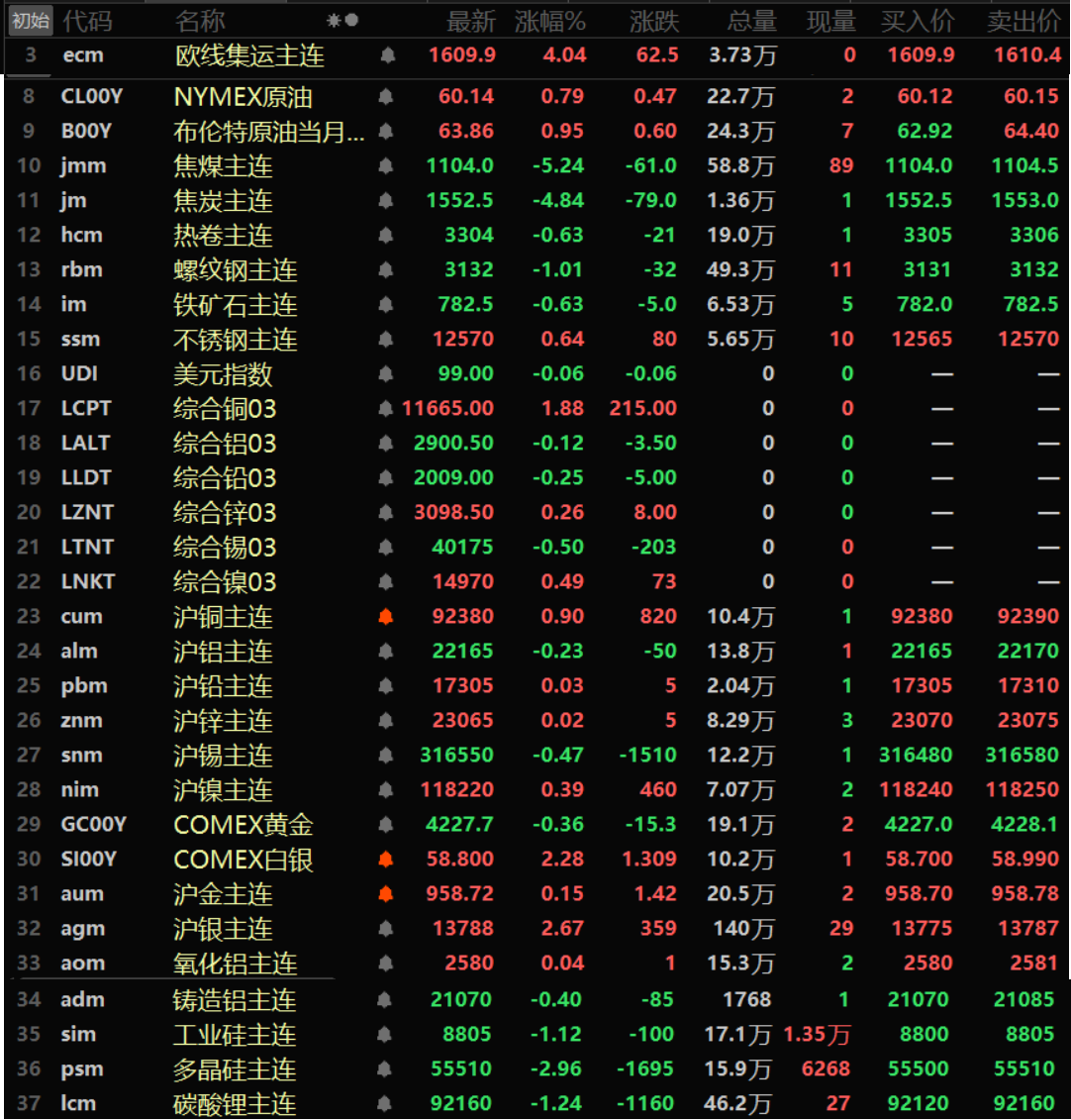 隔夜黑色系方面多下跌,不锈钢涨0.64%,螺纹跌1.01%,双焦方面,焦煤跌5.24%,焦炭跌4.84%。