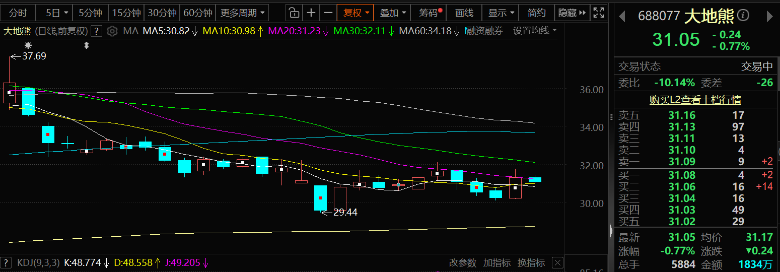 12月8日,大地熊股价出现下跌,截至12月8日9:55分,大地熊跌0.77%,报31.05元/股。