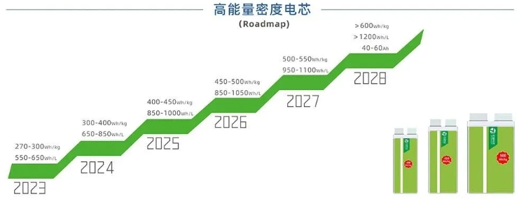 2028年,质量能量密度>600Wh/kg,体积能量密度>1200Wh/L,40-60Ah单体。