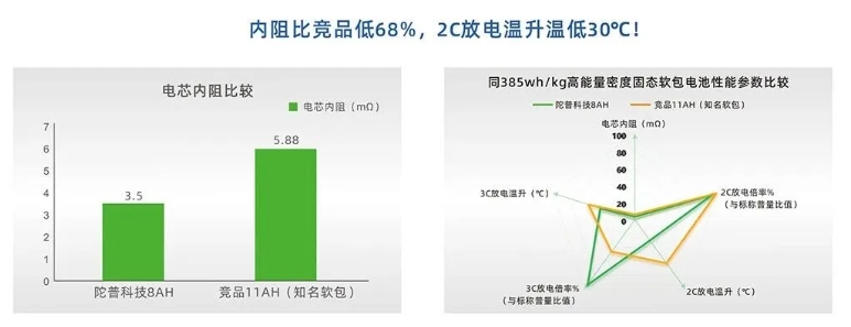 2025年12月08日,陀普科技公众号信息,无人机电池方案发布。电芯最高能量密度达500Wh/kg,含高能量密度(450Wh/kg)与高功率(320Wh/kg)双系列,兼具低温长循环等特性。通过叠片技术、耐高温隔膜提升安全与性能,内阻较竞品降68%,2028年将实现>600Wh/kg的技术目标。
