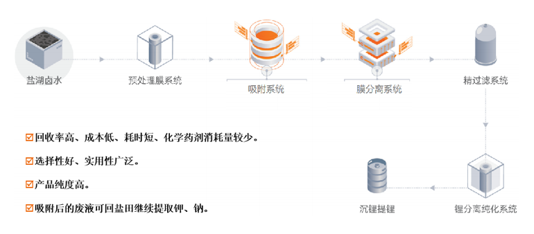 ➔ 定向吸附技术:开发高性能、高选择性的锂吸附剂,能像“智能磁石”一样,在复杂离子环境中精准“捕获”锂离子,实现镁锂等杂质的高效分离,尤其适用于超高镁锂比盐湖。
