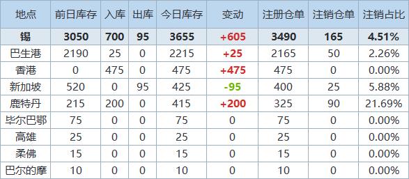 》查看更多金属库存信息