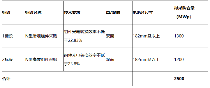 本项目为三峡集团2026年度光伏组件框架集中采购(第一批次),预估采购总容量2500MWp。本次招标为框架采购,框架协议计划分配期限为合同签订之日起至2026年6月30日。