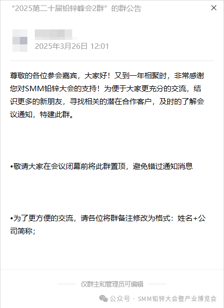 大会开幕之前,我们将组建铅锌大会专属社群,仅邀请参与会议的高层进群!群中除了能收到第一手会议通知、酒店优惠之外,更重要的是提前在群内认识客户,提前约、现场谈!