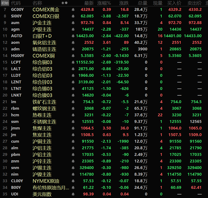 隔夜黑色系多飘绿,铁矿跌0.72%,不锈钢跌0.08%,螺纹钢跌0.07%%,热卷跌0.22%。双焦方面:焦煤涨3.5%,焦炭涨0.63%。
