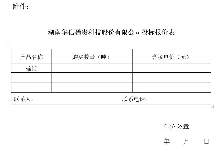 湖南华信稀贵科技股份有限公司现对一批 碲锭 进行外售招标,欢迎具备相应资格的单位前来投标,具体情况如下: