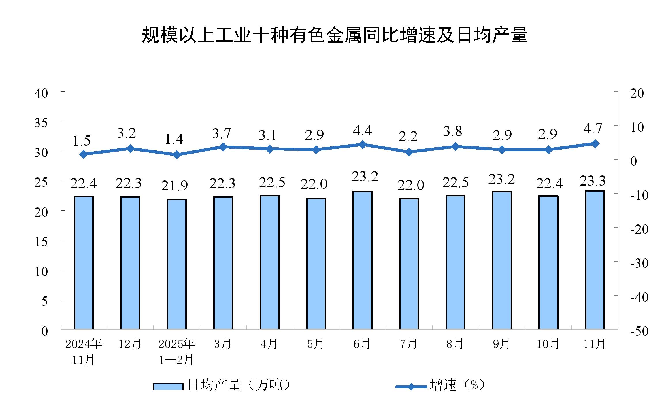 数据亦显示,2025年11月,中国十种有色金属产量为699万吨,同比增长4.7%。1-11月累计产量为7447万吨,同比增长3.8%。