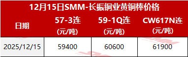【SMM价格】2025年12月15日长振黄铜棒价格