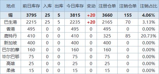 》查看更多金属库存信息