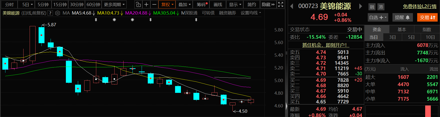 12月19日,美锦能源的股价出现上涨,截至19日收盘,美锦能源涨0.86%,报4.69元/股。