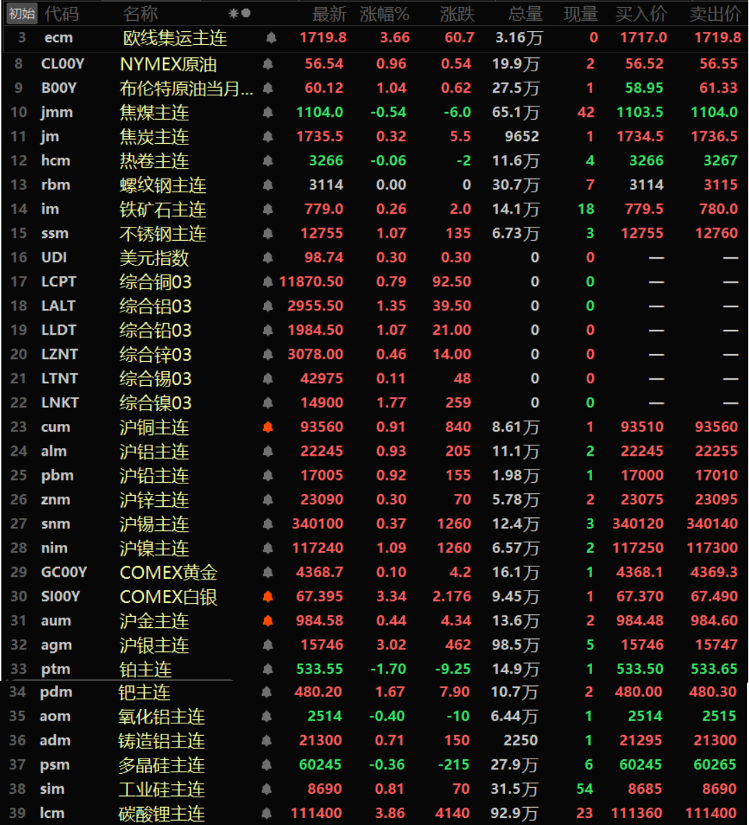 金属市场方面: