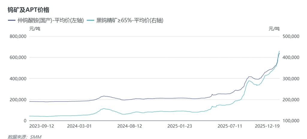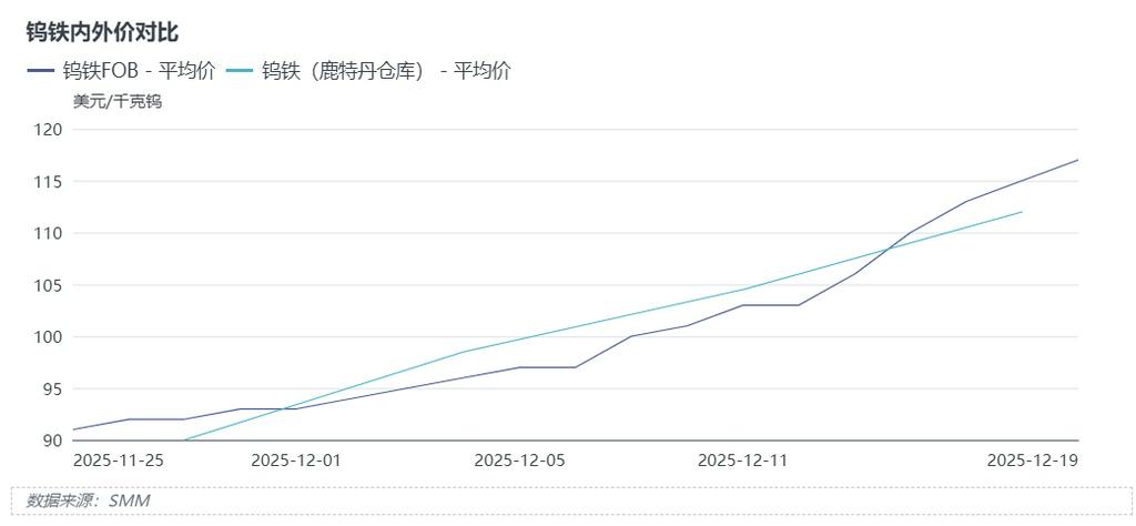临近年底,国内钨矿上游企业集中进入设备检修周期,叠加政策管控趋严、矿端剩余可用指标较少,12月以来钨市场加速上涨,上游原料端成交缩量,但这部分成交足以撬动整个市场,钨市场价格围绕高价成交的消息,市场无量上涨。