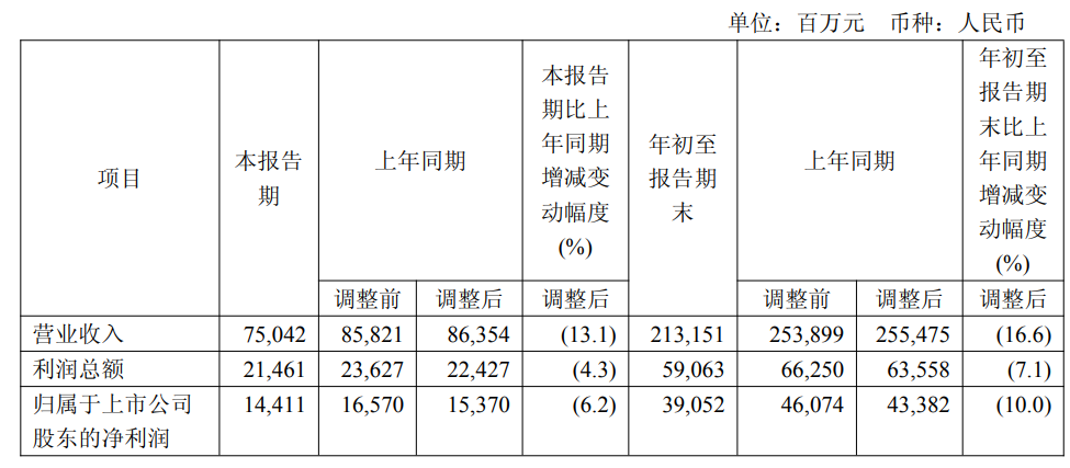 中国神华此前发布的三季报显示:2025年前三季度实现营收2131.51亿元,同比下降16.6%;净利润390.52亿元,同比下降10%。其中,第三季度实现营收750.42亿元,同比下降13.1%;净利润144.11亿元,同比下降6.2%。