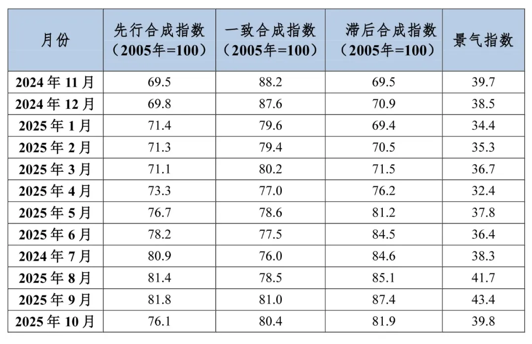 综合景气指数由9项指标构成,即先行指数和一致指数的构成指标。