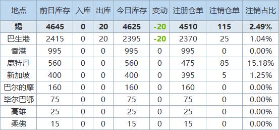 》查看更多金属库存信息